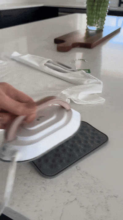 Le compagnon idéal de vos voyages : un mini fer à repasser léger, efficace et prêt en quelques secondes.